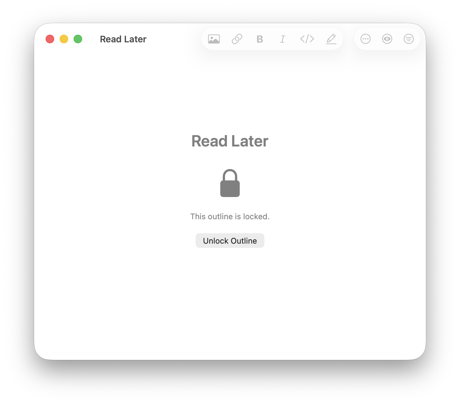 This is the function that Locks an Outline. When an Outline is Locked it is encrypted on the filesystem using industrial grade encryption (AES GCM with a 256bit key).